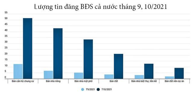 Lượng tin đăng bán và mức độ quan tâm thị trường BĐS cả nước tháng 10/2021 có sự tăng trưởng mạnh mẽ so với tháng 9.