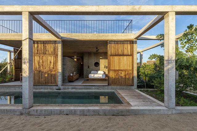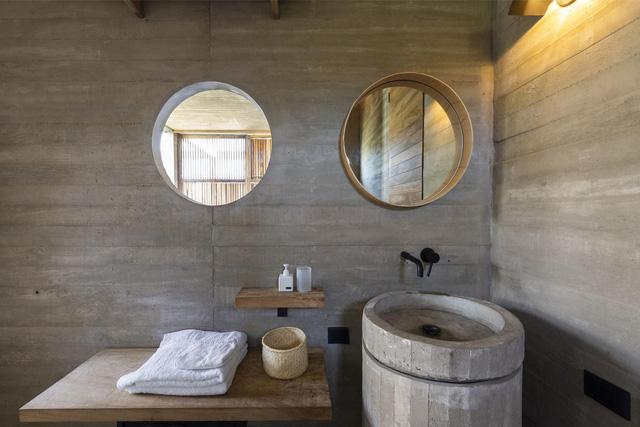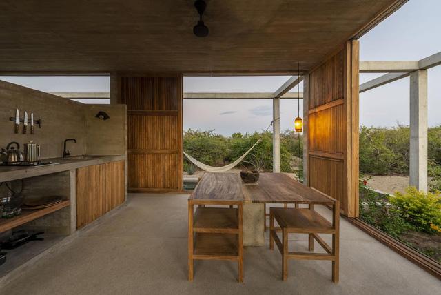 Đồng thời, việc lựa chọn vật liệu thô mang lại độ cứng, độ bền và giúp ngôi nhà ít phải bảo dưỡng. Trong khi việc sử dụng gỗ làm cho không gian thêm ấm áp.