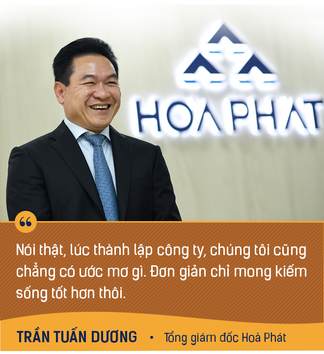 "Nói thật, lúc thành lập công ty, chúng tôi cũng chẳng có ước mơ gì. Đơn giản chỉ mong kiếm sống tốt hơn thôi", ông Trần Tuấn Dương – Tổng Giám đốc Hoà phát chia sẻ về ngày đầu lập nghiệp cùng ông Trần Đình Long. Doanh nghiệp này khởi đầu với việc buôn bán đồ cũ và có tên Công ty TNHH Thiết bị Phụ tùng.