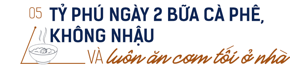 Một ngày bình thường của "Vua thép" Việt Nam khó thiếu 2 bữa cà phê, trong đó có buổi "bốc phét xuyên trưa" với bạn thân. Hết giờ làm việc, Chủ tịch Hoà Phát rất ít đi tiếp khách mà dành thời gian tập thể thao, cuối tuần là thời gian nghỉ ngơi và tụ tập bạn bè.